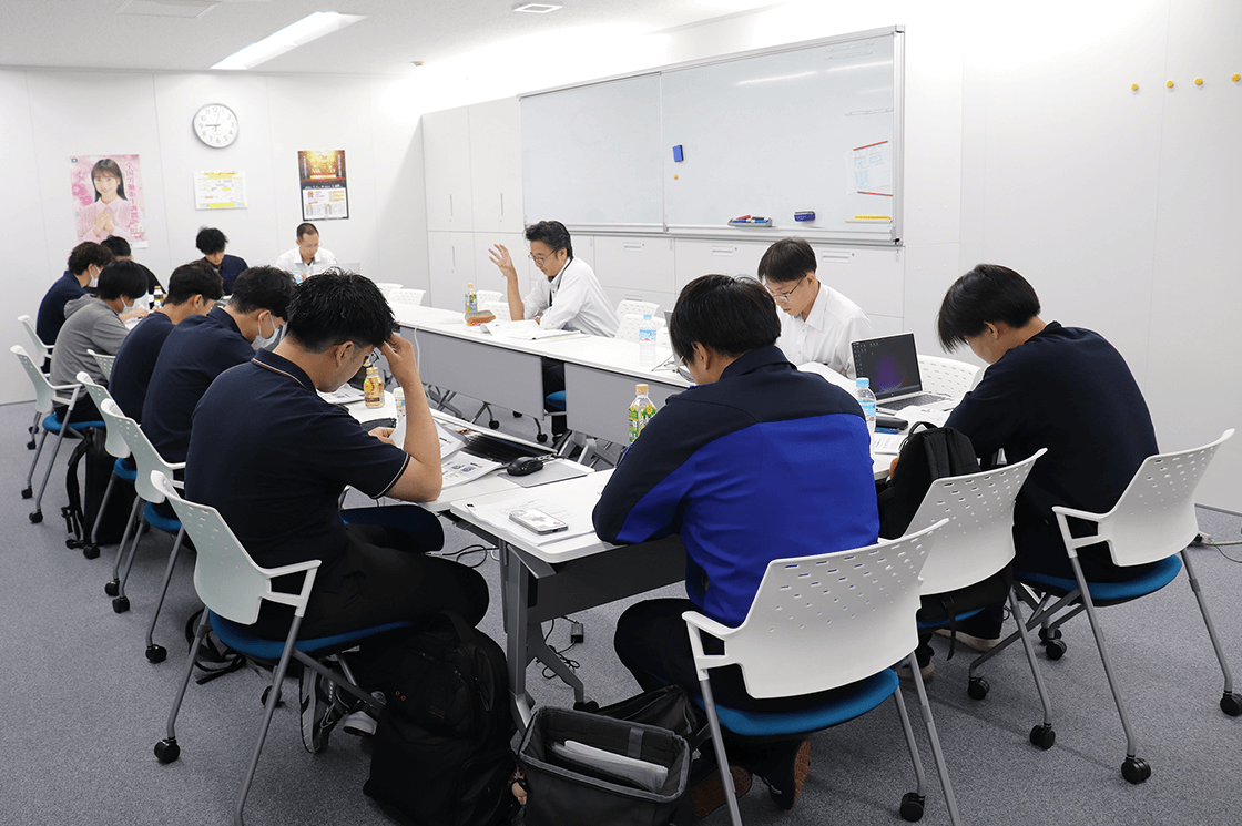 当社では、新人社員、若手社員、中堅クラス、管理職と各ステージに合わせた教育システムを設けOff-JT・OJT制度、教育環境・質の向上、基礎技術の習得(アカデミー室)の活動を行っております。